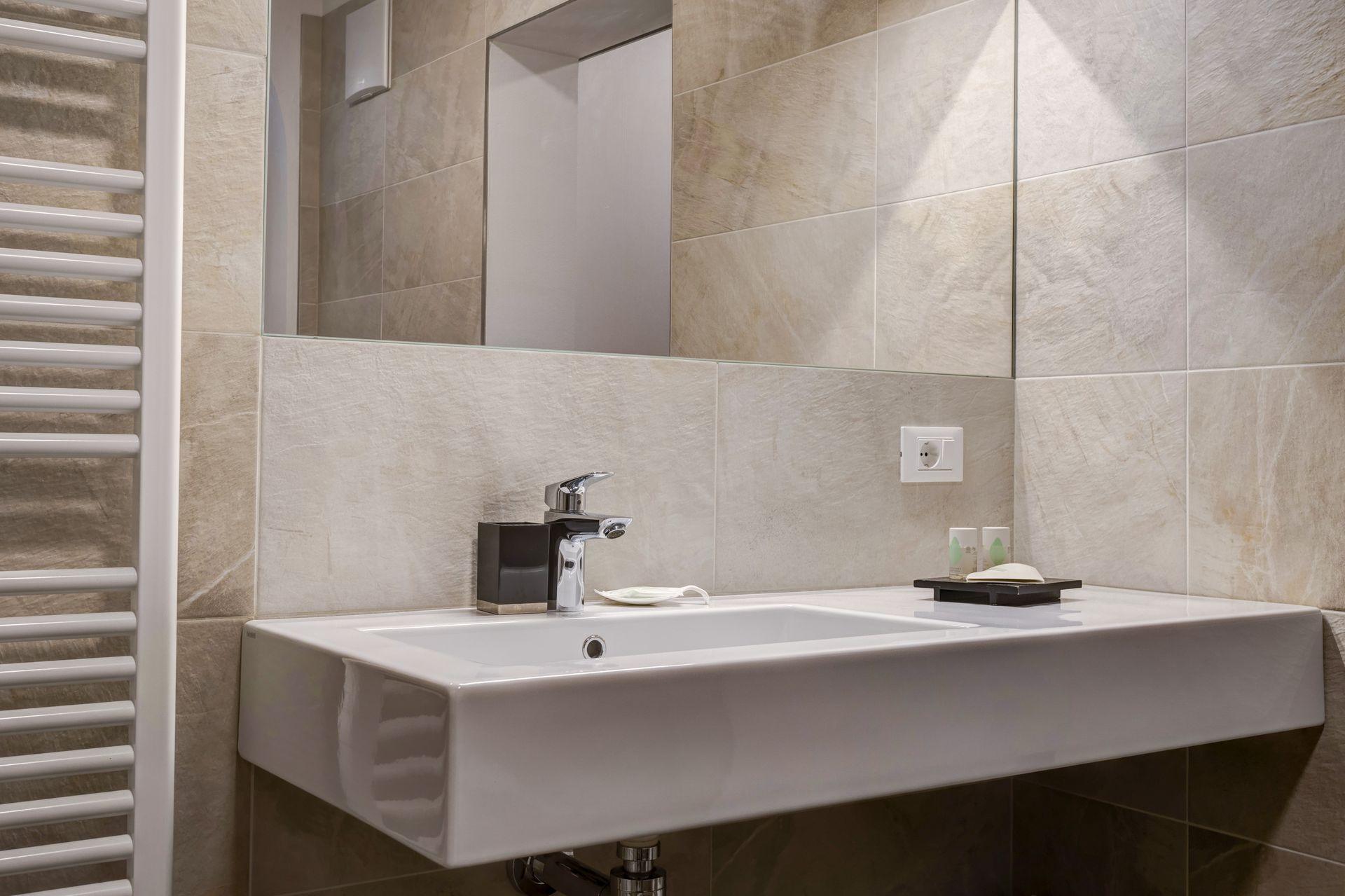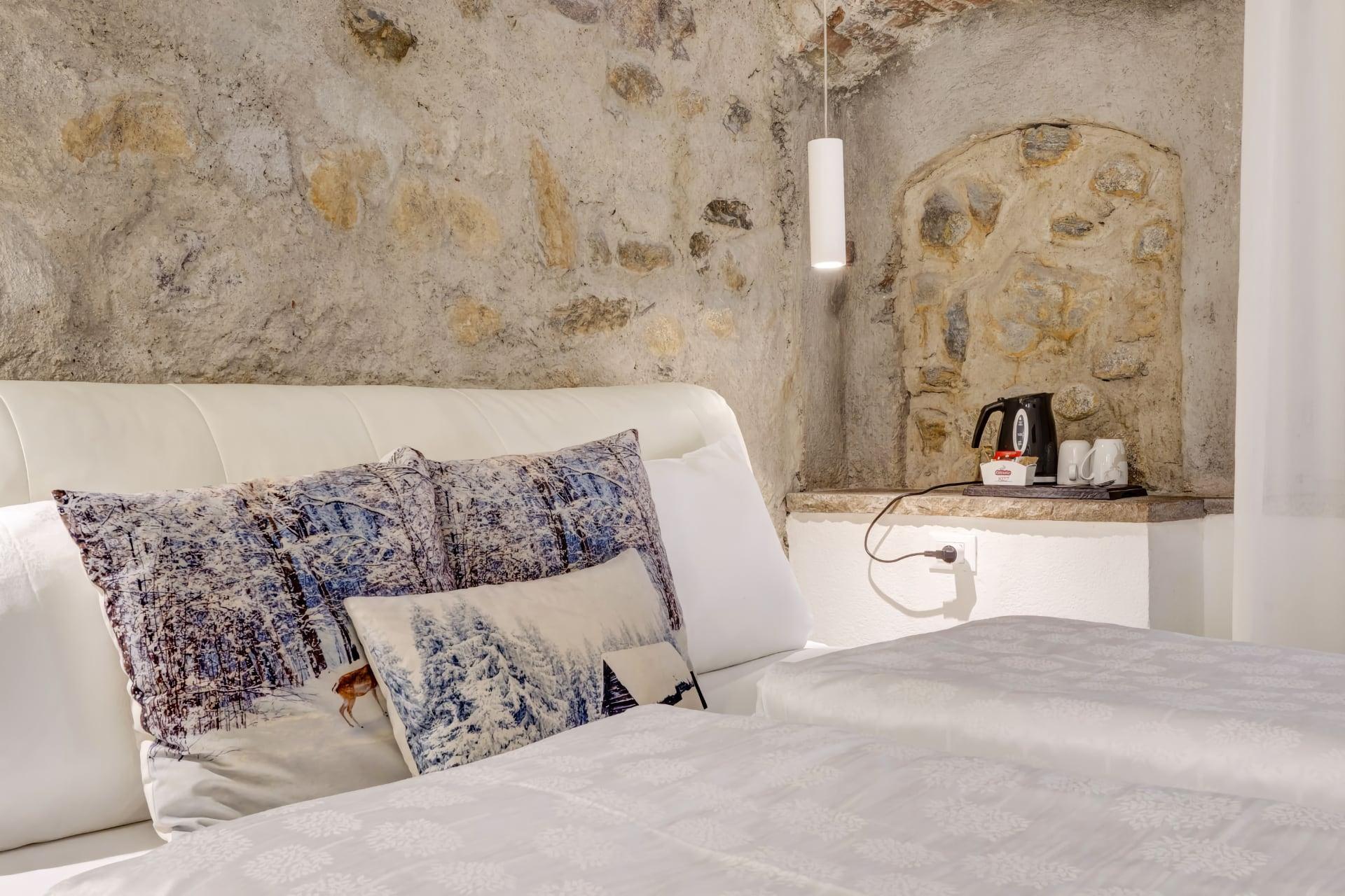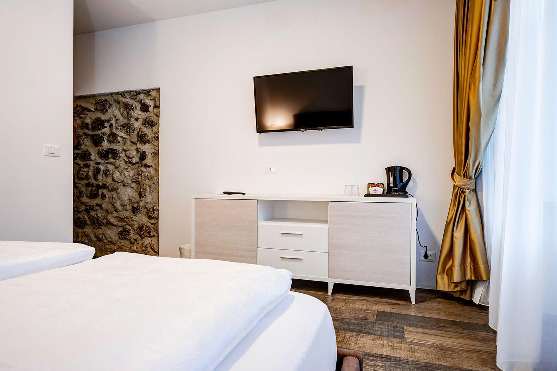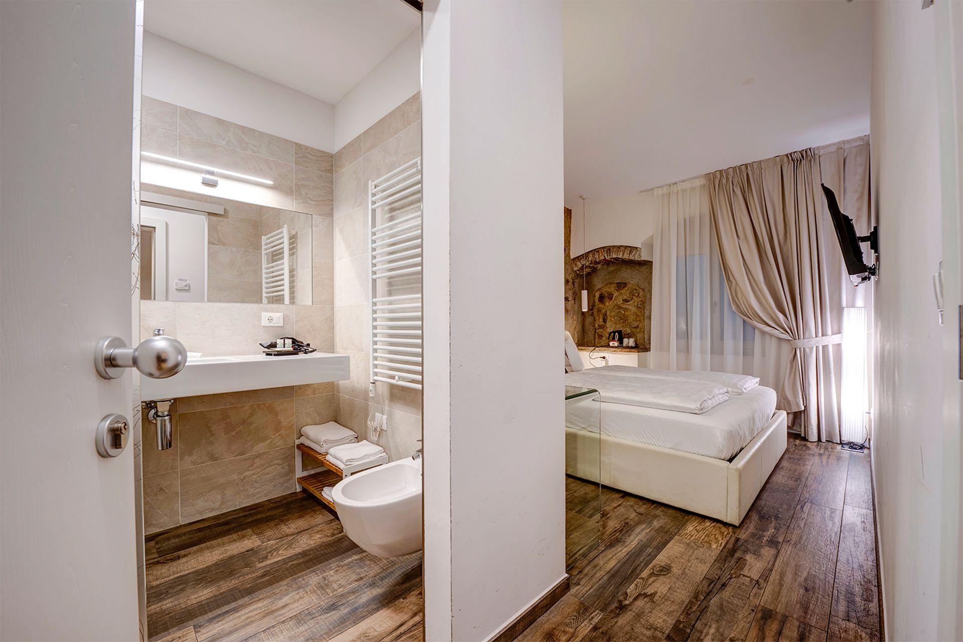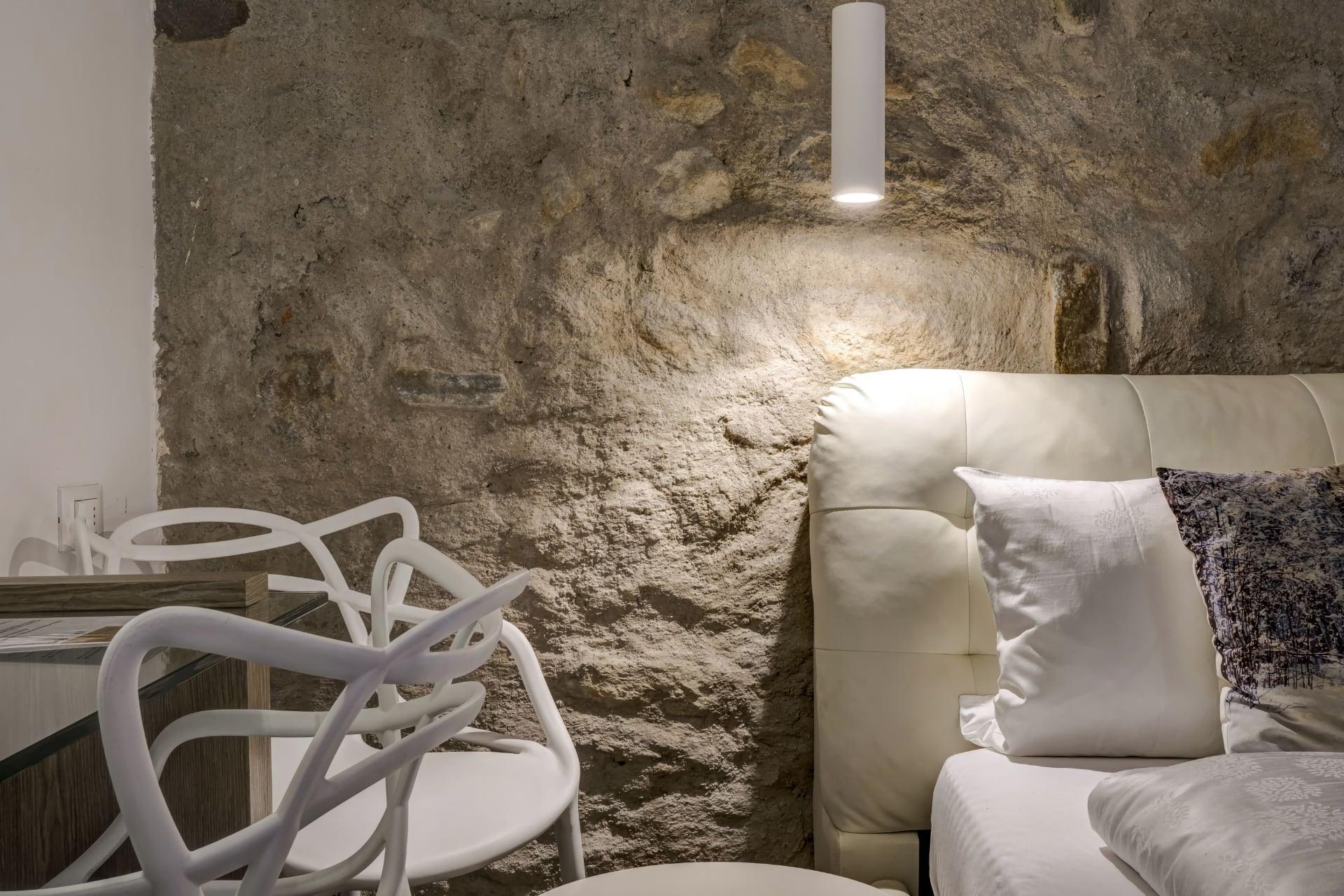 Ogni camera conserva un tratto distintivo: una finestra ad arco, un soffitto con travi a vista, una parete in pietra antica, un dettaglio che racconta qualcosa di sé e del tempo da cui proviene. Allo stesso tempo, un design coerente lega tra loro tutti gli ambienti, rendendo l’esperienza armoniosa e riconoscibile.