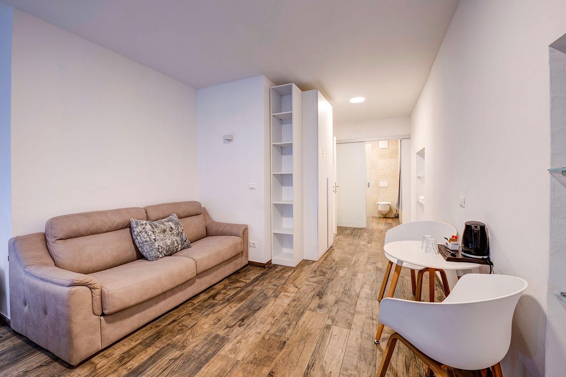 Abbiamo scelto di valorizzare ogni metro quadrato con attenzione, rispettando le proporzioni e le particolarità architettoniche originali. Il risultato è un equilibrio tra stile contemporaneo e memoria storica, dove materiali naturali, colori caldi e luci soffuse contribuiscono a creare un’atmosfera intima e rilassata.